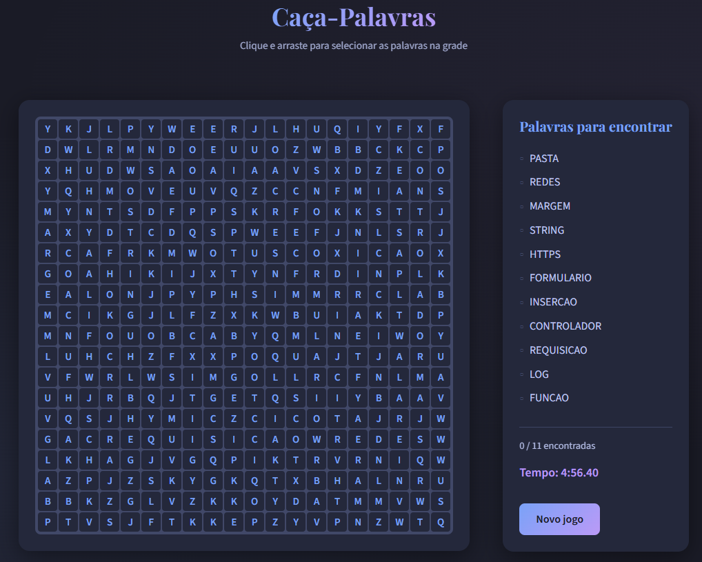Desde que comecei a “brincar” de Vibe Coding fiquei fascinado: com ferramentas como Cursor, Antigravity, Claude Code entre outros, se você tem conhecimento de programação é possível escrever programas completos (back+frontend) com poucas linhas de prompt. É claro que na maioria das vezes o programa não fica pronto como num passe de mágica: é necessário refinar o programa com mais prompts, corrigir bugs que com certeza aparecem, às vezes fazer buscas na internet pra entender algo que não está funcionando e por aí vai. Então alguns dias atrás eu estava entediado e resolvi brincar um pouco de Vibe Coding para criar um jogo de caça-palavras e fazer algo diferente: abri a IDE do Cursor e depois de uns 4 prompts já tinha um joguinho simples, mas que dava pra usar pra matar o tempo usando a cachola. Depois de brincar um pouco com o joguinho pensei em disponibilizar o mesmo para que outras pessoas pudessem jogar: teria então que fazer o deploy do mesmo em um servidor (pensei na AWS) e bater a cabeça um pouco pra fazer funcionar pois o mesmo compreende backend+frontend rodando na internet. Bom, a “cara” do jogo vocês podem conferir no print abaixo.